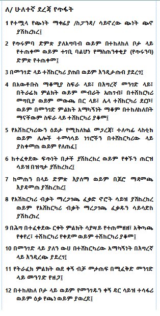 👉በአሽከርካሪዎች የሚፈጸሙ #ጥፋቶች እና #የጥፋቶቹ እርከን :_ በተከታታይ እናቀርባለን።