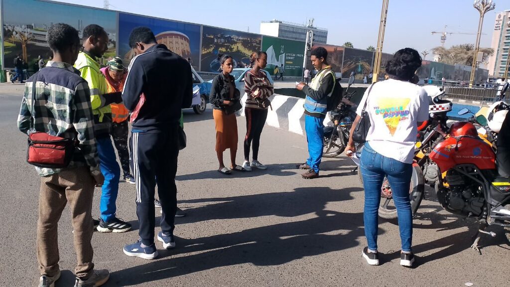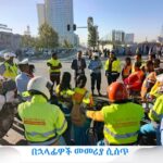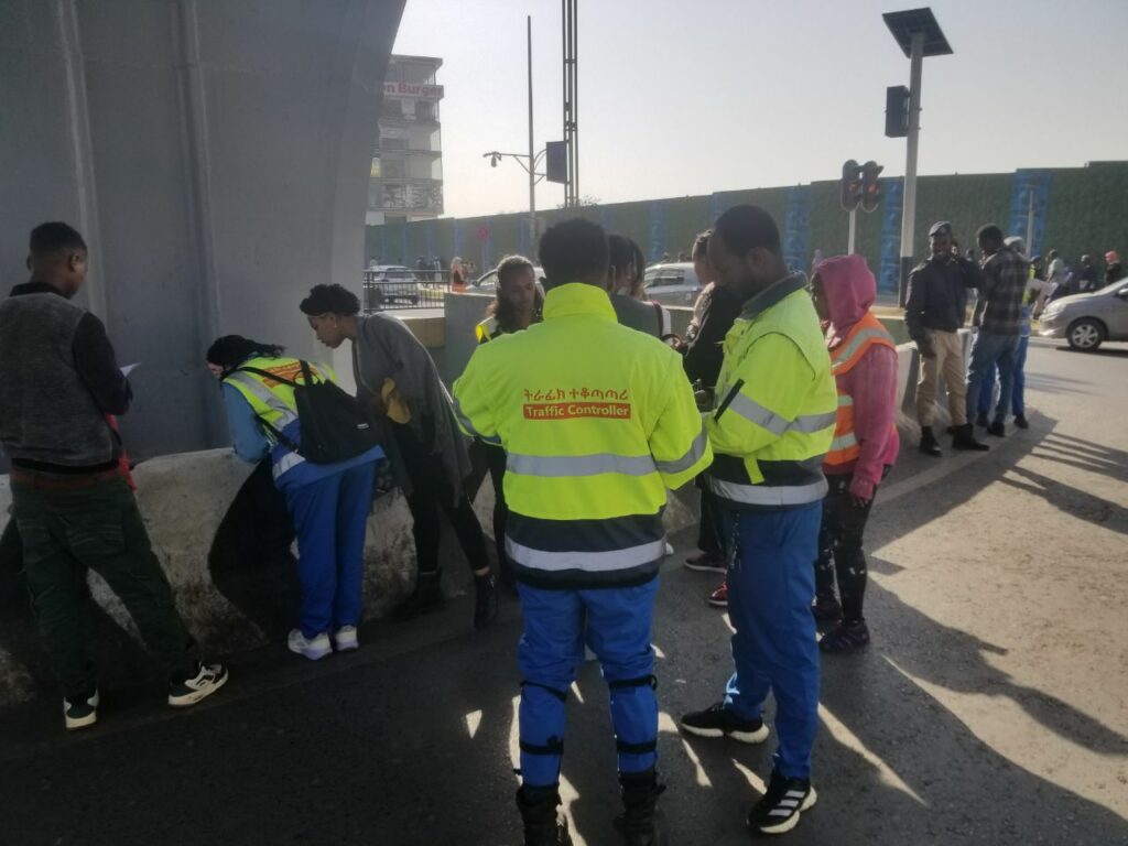 (T/M/B/ February 20/2018):- Addis Ababa Traffic Management Authority Kirkos Branch Office Road Safety Awareness and Enforcement Directorate, in coordination with volunteer traffic controllers and Popular Police members, recently conducted a corrective action against pedestrians who did not use the correct road usage.